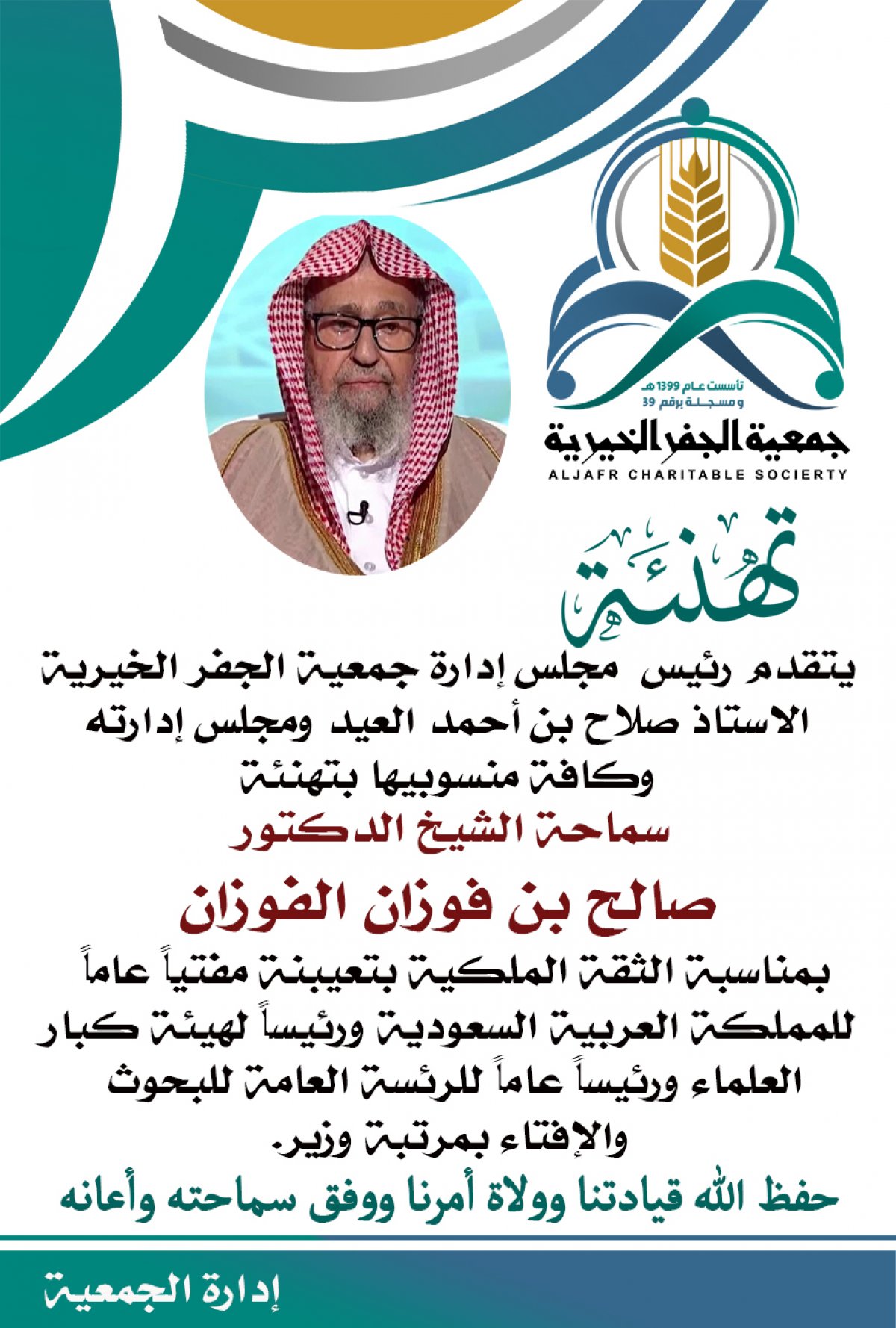 تهنئة سماحة الشيخ الدكتور صالح بن فوزان الفوزان مفتي عام المملكة